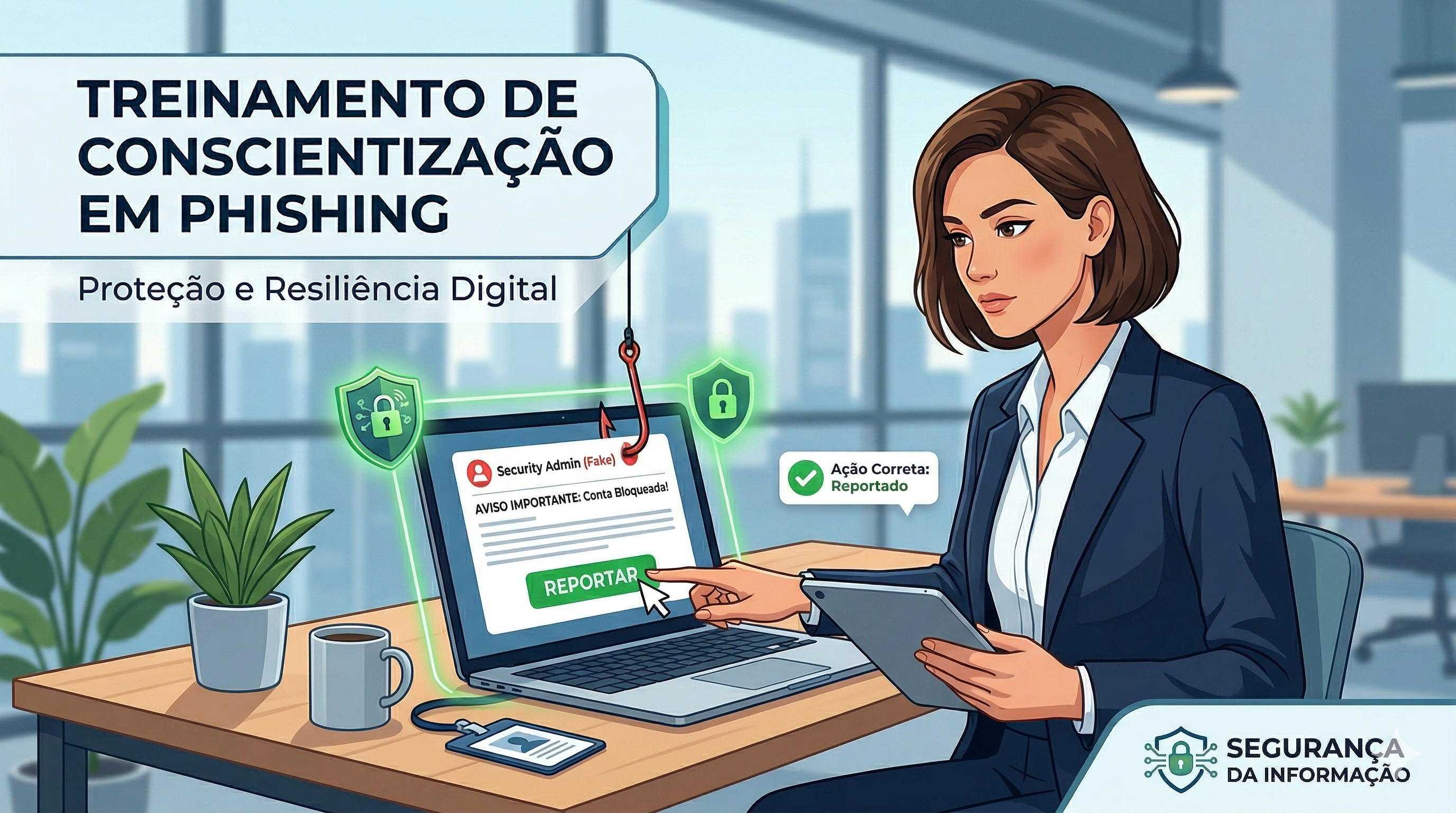 Mais de 90% dos ataques cibernéticos bem-sucedidos começam com um erro humano através de phishing. Ao dominar estas habilidades, você não protege apenas a empresa, mas também desenvolve hábitos de segurança que se aplicam à sua vida digital pessoal e financeira.